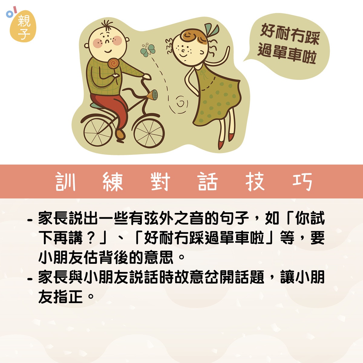 溝通技巧練習:家長可透過開啟話題、詢問、補充說明及歸納確認,幫助幼兒練習完整表達想法,並學習傾聽與回應,促進雙向溝通。