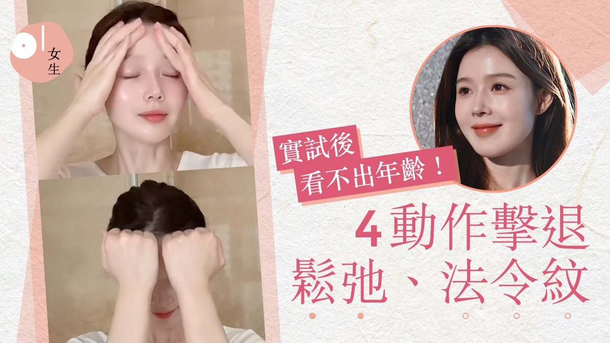 手掌拉提嘴邊肉至太陽穴:四指併攏,用手掌向上拉提嘴邊肉至太陽穴位置,每天兩邊各10~20次,幫助拉提鬆弛肌膚。