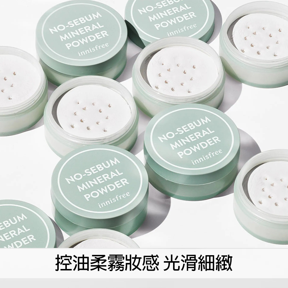 INNISFREE無油無慮礦物控油蜜粉餅:特別適合夏天及油性肌膚,控油效果佳且不飛粉、不脫妝,妝容持久且清爽,體積小巧方便攜帶補妝。