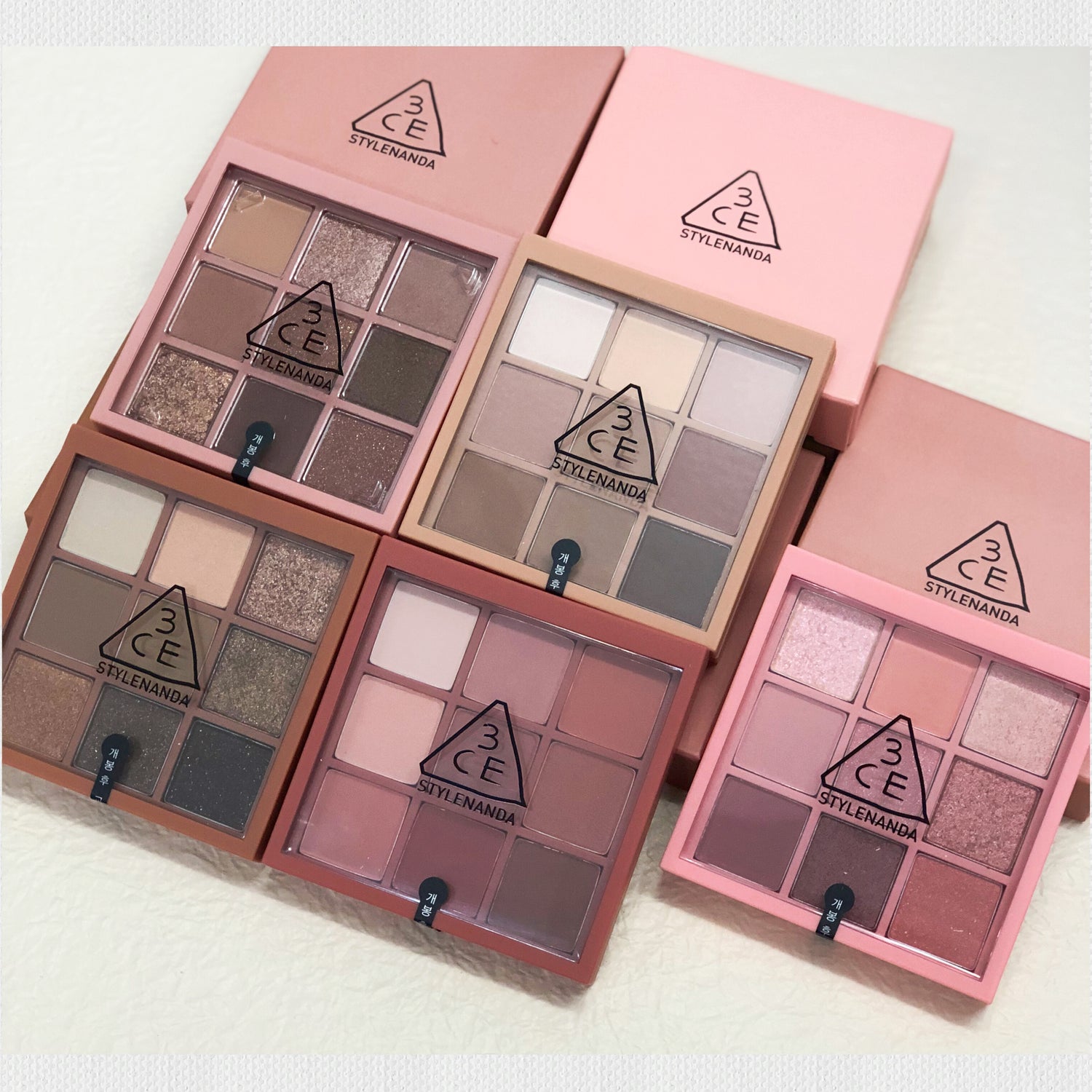 3CE九色眼影盤以其多樣的色彩組合和質地受到許多使用者喜愛,主要特色是結合了霧面與珠光質地,色彩飽和且易於暈染,適合打造多種妝容風格。與其他韓系眼影盤相比,3CE的九色眼影盤在色彩選擇上偏向自然且帶有粉色、玫瑰色調,部分系列如「Overtake」偏暖棕銅色調,「Beach Muse」則偏粉橘調,適合日常及春季妝感。
