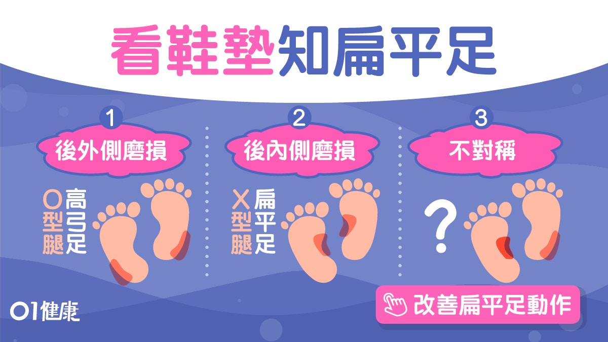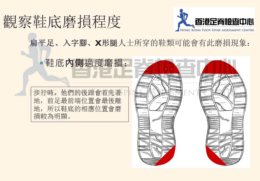 專家建議透過調整步態、選擇合適鞋墊或矯正器,以及必要時尋求物理治療或醫療介入,以減輕足部及關節負擔,避免進一步損傷。正常鞋底磨損應集中在前腳掌中間及後腳跟邊緣,若內側磨損明顯則需注意步態問題。