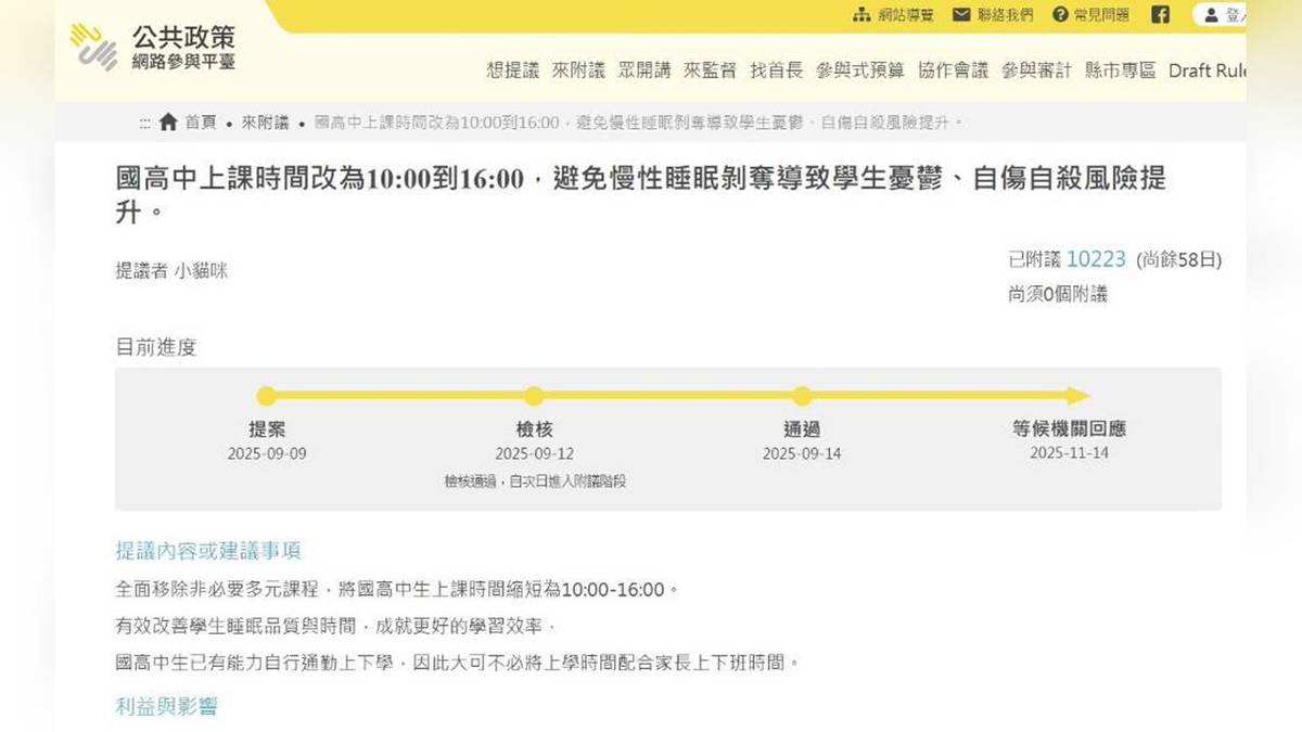 時間安排與學習效率:有研究與提案指出,學生若能晚些上學(如10點開始),可改善睡眠品質與學習效率,但此舉可能與家長的工作時間產生衝突,家長團體對此表達現實上的擔憂。