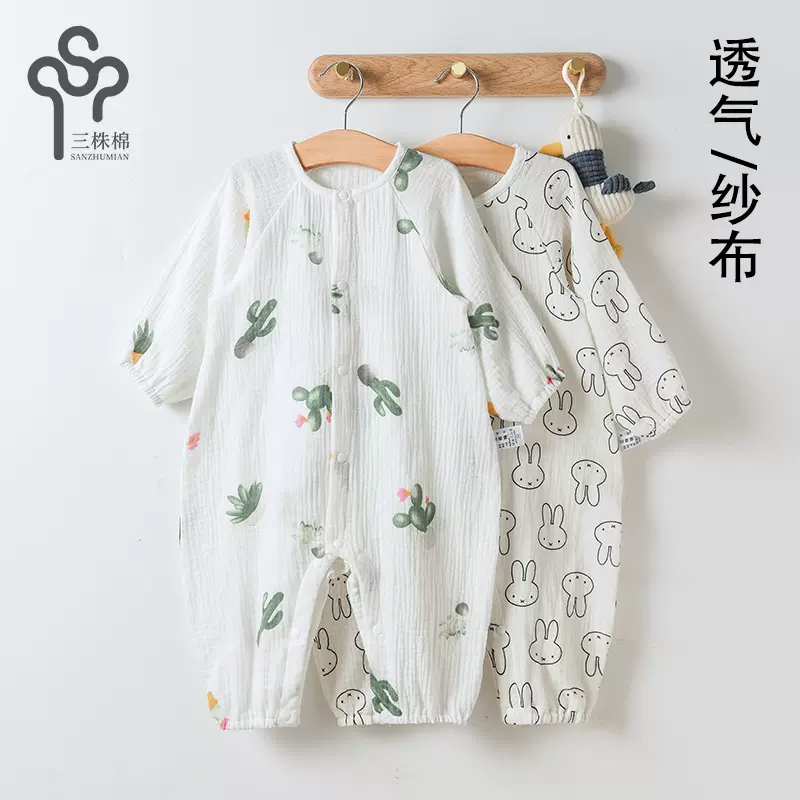 - 紗布材質:質地輕薄且透氣性佳,特別適合悶熱或夏季使用,不易悶出痱子,且吸汗效果好,是亞洲地區常見的嬰兒內著材質。