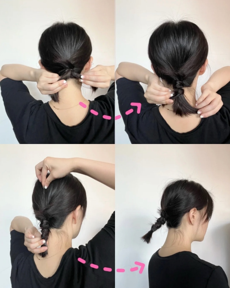 - 在綁髮前噴少許水或使用定型液,讓頭髮更好抓且不毛躁,增加固定效果。