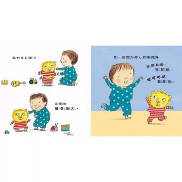 《我長大了:哄你的小獅子睡覺》:透過小男孩哄獅子玩偶睡覺的過程,展示跳舞、換睡衣、念故事、親吻等睡前儀式,適合學齡前幼兒,且書本設計安全耐用。
