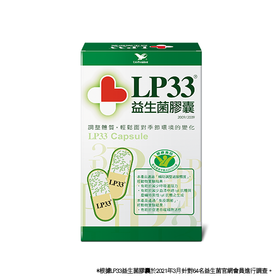 副乾酪乳桿菌 LP33:多項研究顯示,持續補充6週能有效改善過敏性鼻炎症狀如打噴嚏、鼻塞,並輔助調整過敏體質。