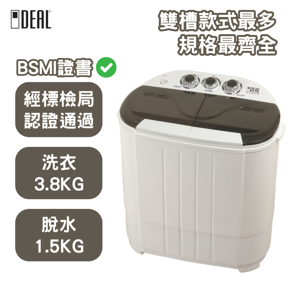 | IDEAL愛迪爾 | 約3.8公斤 | 雙槽定頻 | 雙槽雙開設計,洗脫同步,透明上蓋,不鏽鋼脫水內桶,體積小容量大,價格親民。 |