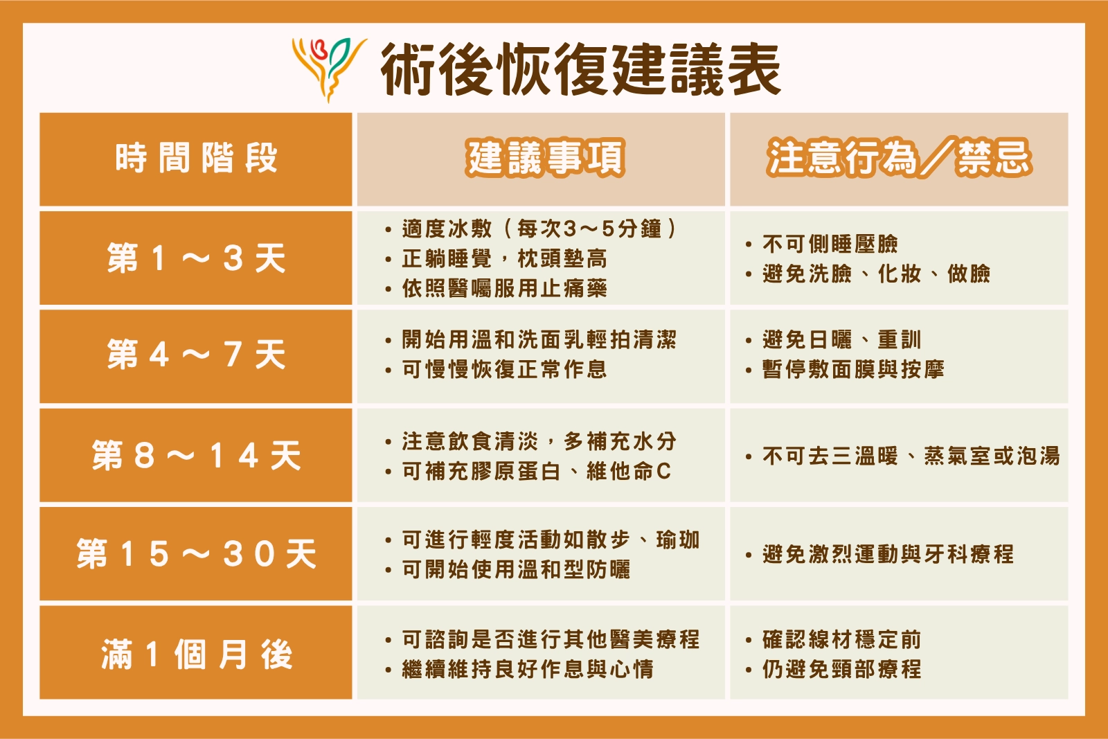術後應定期回診,讓醫師評估恢復狀況,並依照專業建議調整護理方式。