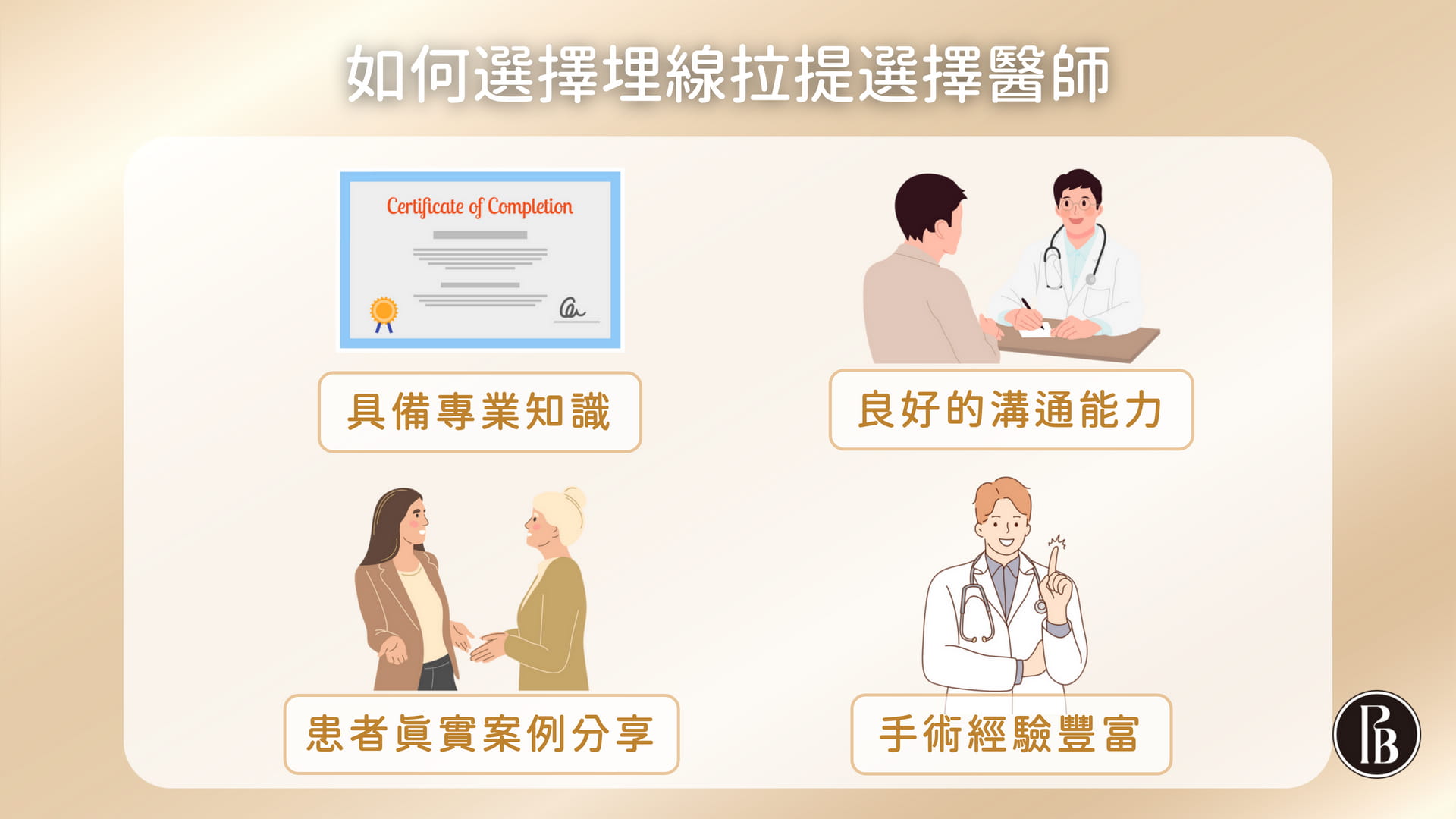 - 術前充分溝通與評估患者條件,能預防術後恢復不良,達成醫患雙贏。