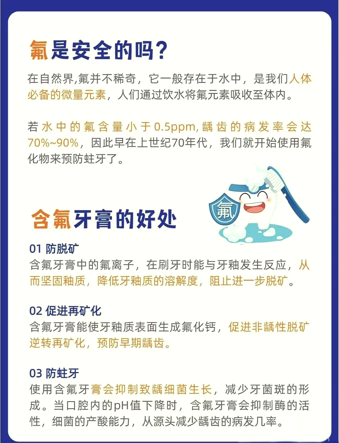 - 避免過量:過量攝取氟化物可能導致氟斑症等副作用,因此需嚴格控制牙膏用量,尤其是吞嚥功能尚未成熟的幼兒。