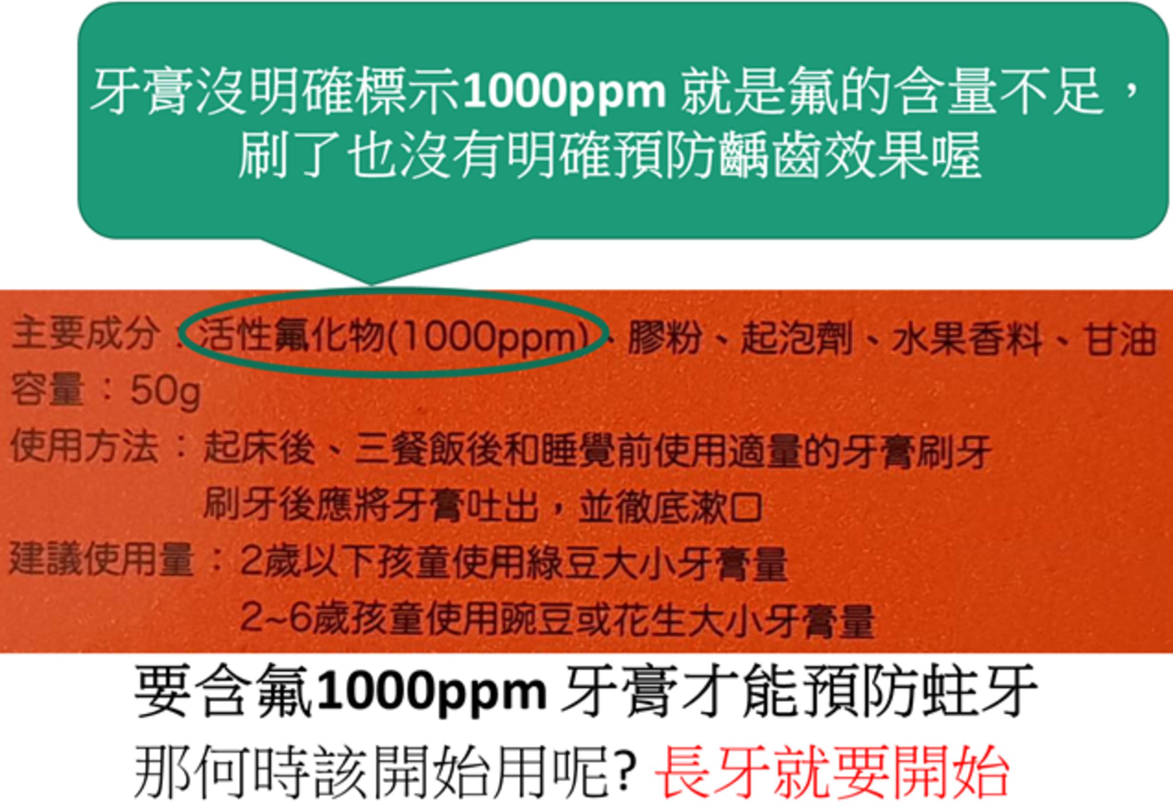 - 濃度建議:世界衛生組織建議,牙膏含氟量應介於1,000–1,500 ppm,才能有效預防蛀牙。