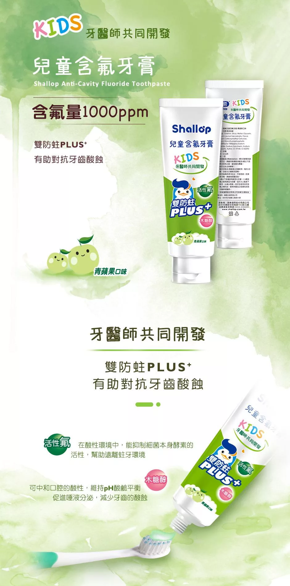 | 功能 | 預防蛀牙、強化琺瑯質、促進口腔健康 |
