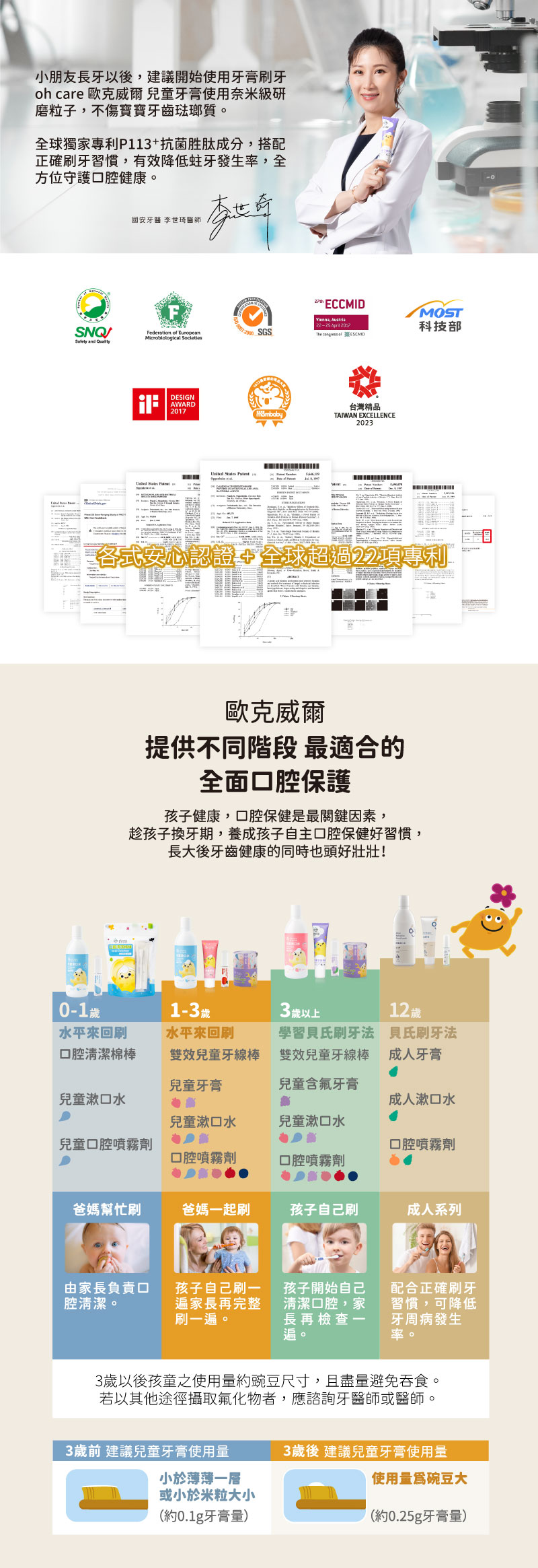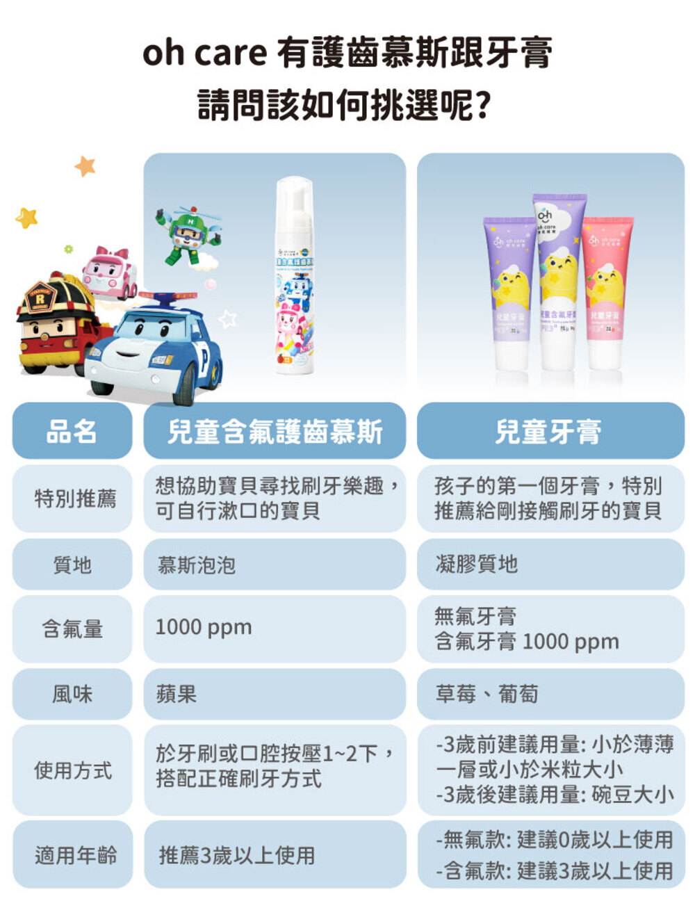 速可淨兒童牙膏 | 1000 | 長牙後即可使用 | 防蛀 | |