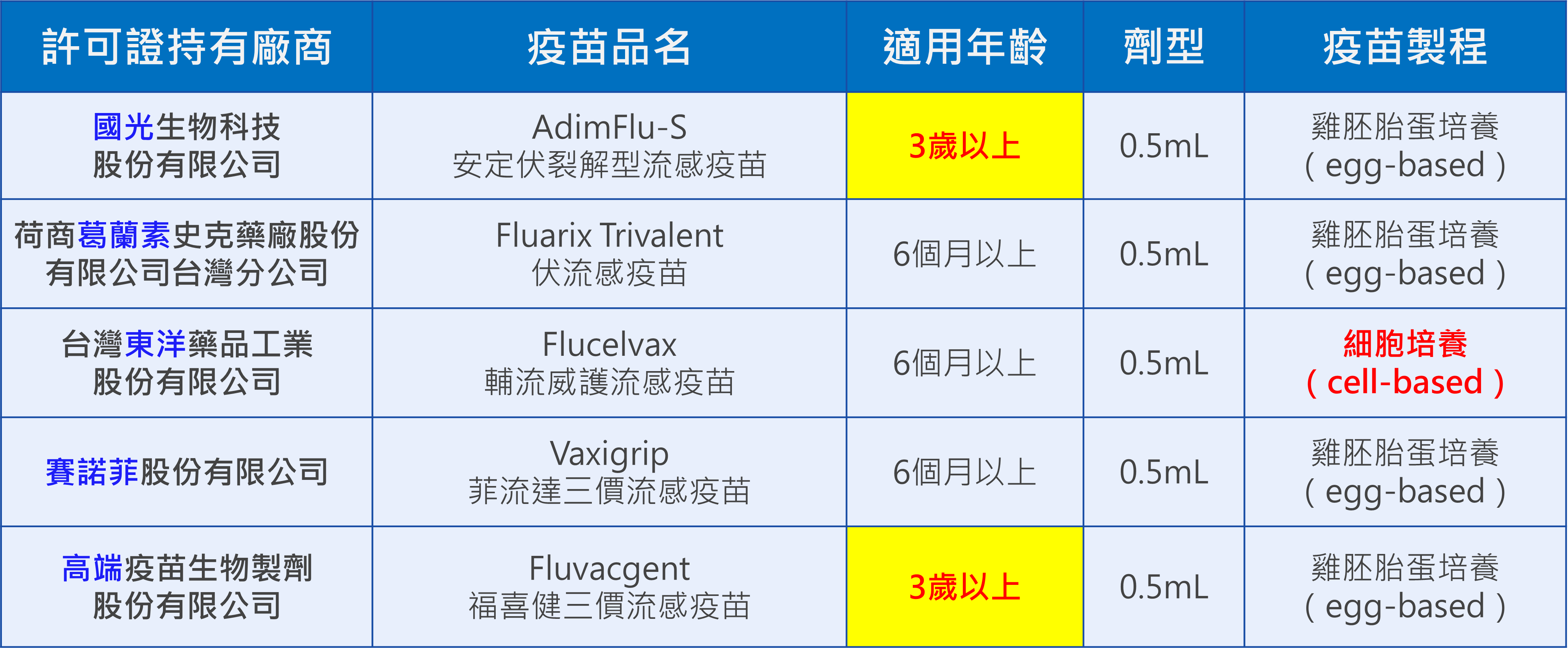 疫苗成分:目前引進的流感疫苗(包含GSK)均不含活病毒,也不含防腐劑硫柳汞,降低過敏風險。