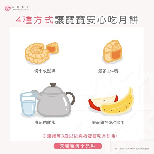 - 食物處理:月餅應切成小塊或壓碎,以防止噎到。