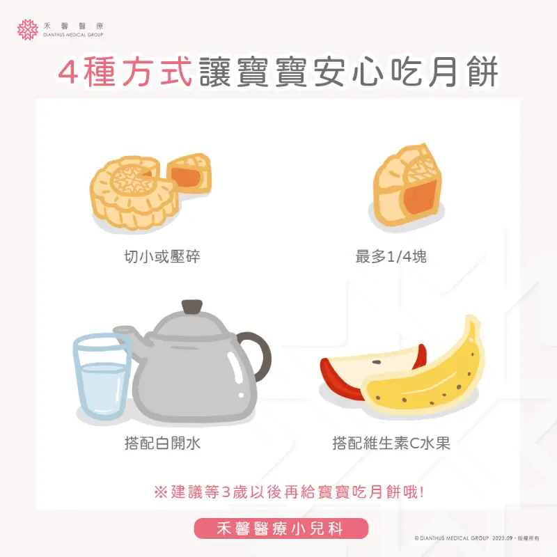 - 三歲以下寶寶最好避免食用月餅,因腸胃尚未成熟,消化困難。