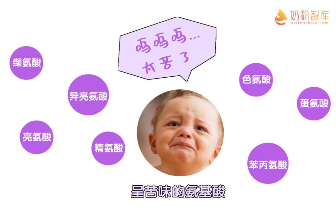 - 高度水解奶粉蛋白質被分解成更小的肽段或氨基酸,味道苦澀且不佳,寶寶接受度較低,但對重度牛奶蛋白過敏的寶寶更適合。