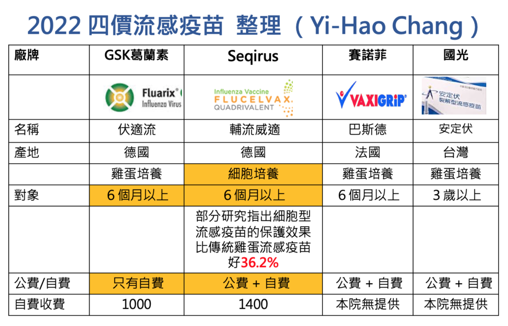 - 四價流感疫苗:除了三價疫苗的成分外,還額外包含一種B型流感病毒,理論上提供更廣泛的保護。