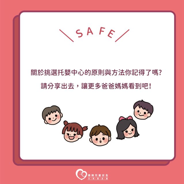 - 收托方式:分為半日托育(每日未滿6小時)、日間托育(每日6小時以上未滿12小時)、臨時托育(因臨時事故送托,時間不得超過半日或日間托育時間)。