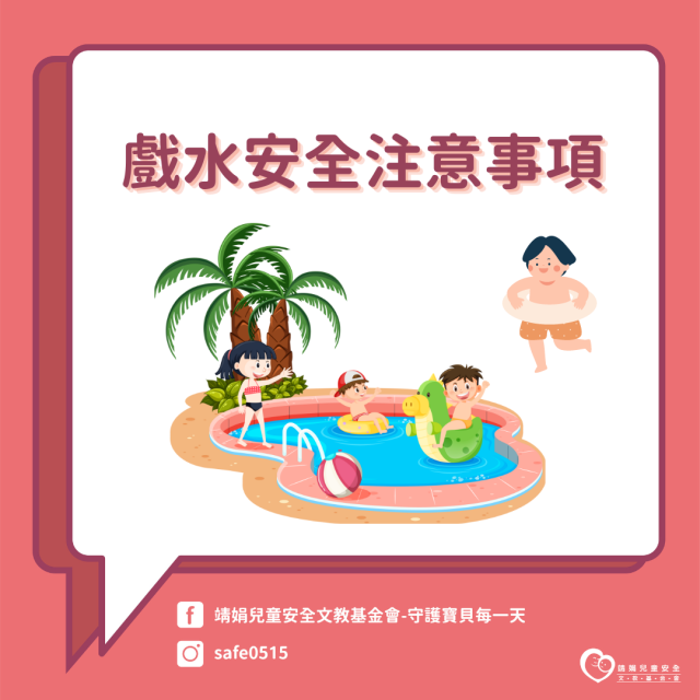 - 即使使用游泳圈、脖圈等浮具,也不能取代大人的監護,任何浮具都無法保證絕對安全。