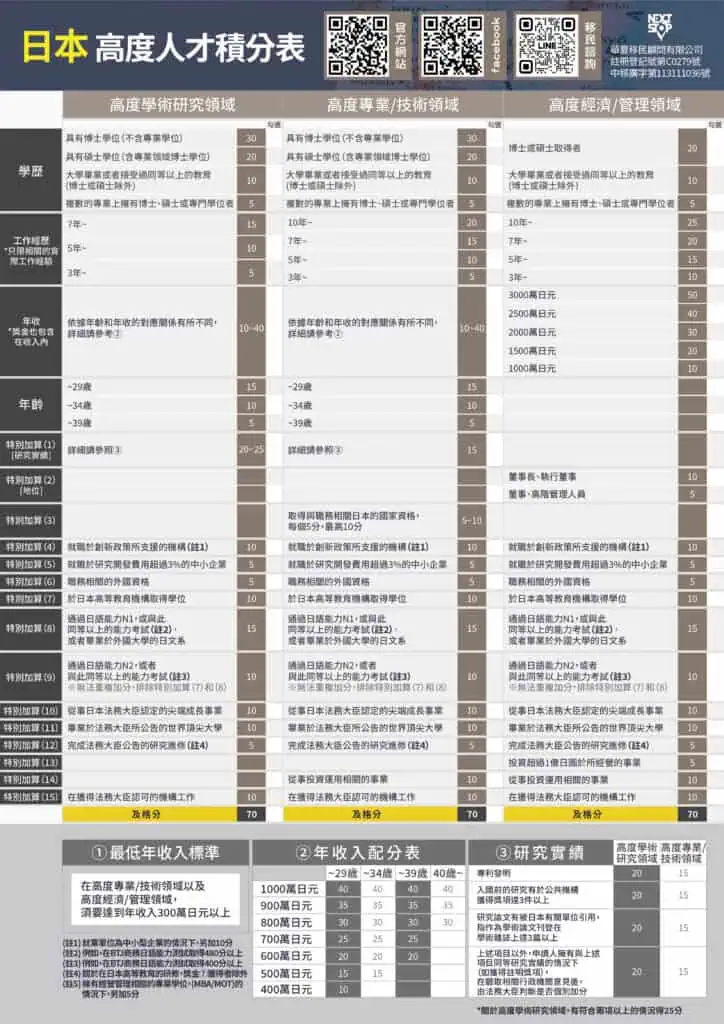 - 適用對象:滿足專業職類、學歷與年收入門檻,採取點數制度。