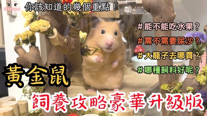 飲食方面,黃金鼠是雜食性,主食為穀物、種子、花草、昆蟲及蔬菜。每天餵食量約為奶粉勺一匙,蔬菜需洗淨燙過且新鮮,水果因含糖量高應適量給予(約一個鼠耳大小份量),蛋白質如雞胸肉可偶爾補充。避免餵食五辛類(洋蔥、蔥、大蒜、韭菜)、辣椒、番茄葉、巧克力、咖啡、茶、酒、酪梨、果核及人工食品等有毒或不適合的食物。