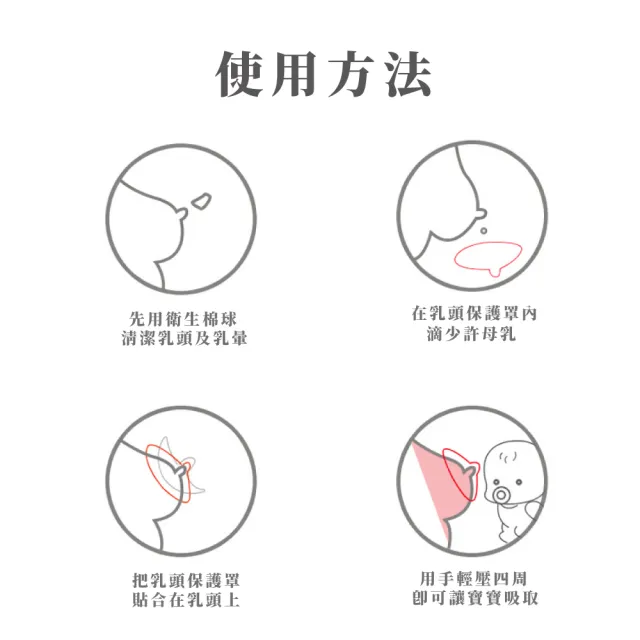 - 哺乳輔具的正確使用需配合良好的哺乳姿勢與寶寶含乳技巧,避免乳頭受傷或輔具使用不當。