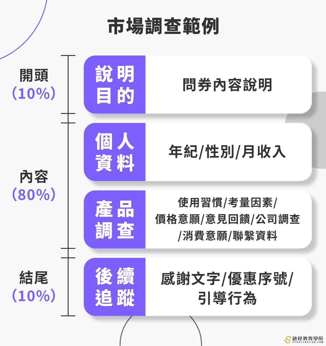 - 市場分析:基於市場調查的目標客群、競爭環境與行業趨勢。