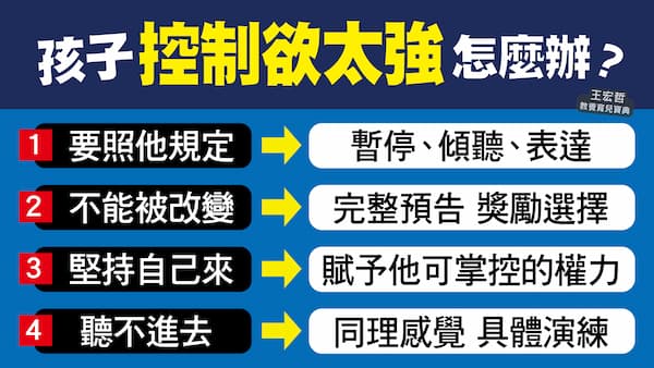 此外,對於控制慾強或容易崩潰的孩子,教養者應特別注意完整預告變動,並用獎勵鼓勵孩子在有限選擇中做決定,讓他們感受到掌控感,降低因突變引起的情緒爆發。