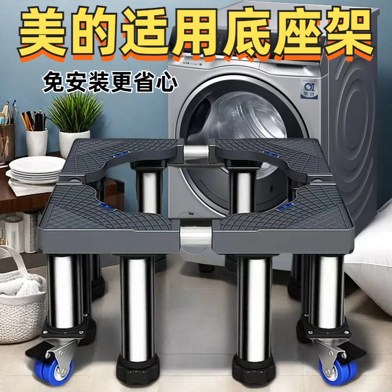 洗衣機增高架:這類型的架子通常由不鏽鋼或其他堅固材質製成,設計時考慮到洗衣機的重量和運轉時的震動。選擇合適的增高架可以提供良好的支撐力和穩定性,尤其是那些具有調整式腳座的產品,可以確保架子在不同地面上保持平衡。