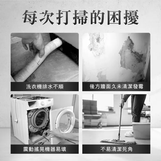 - 方便打掃:墊高後,洗衣機底部空間變大,掃把、拖把或掃地機器人都能輕鬆進入清潔,徹底解決以往難以觸及的衛生死角。