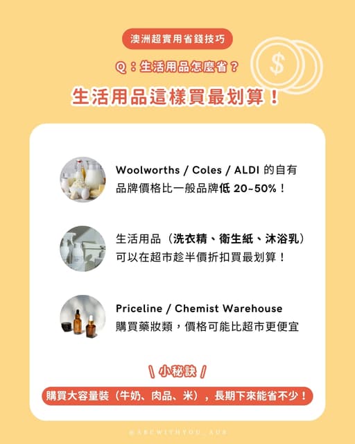 - 日用品及網路費每週約20-30澳幣。
