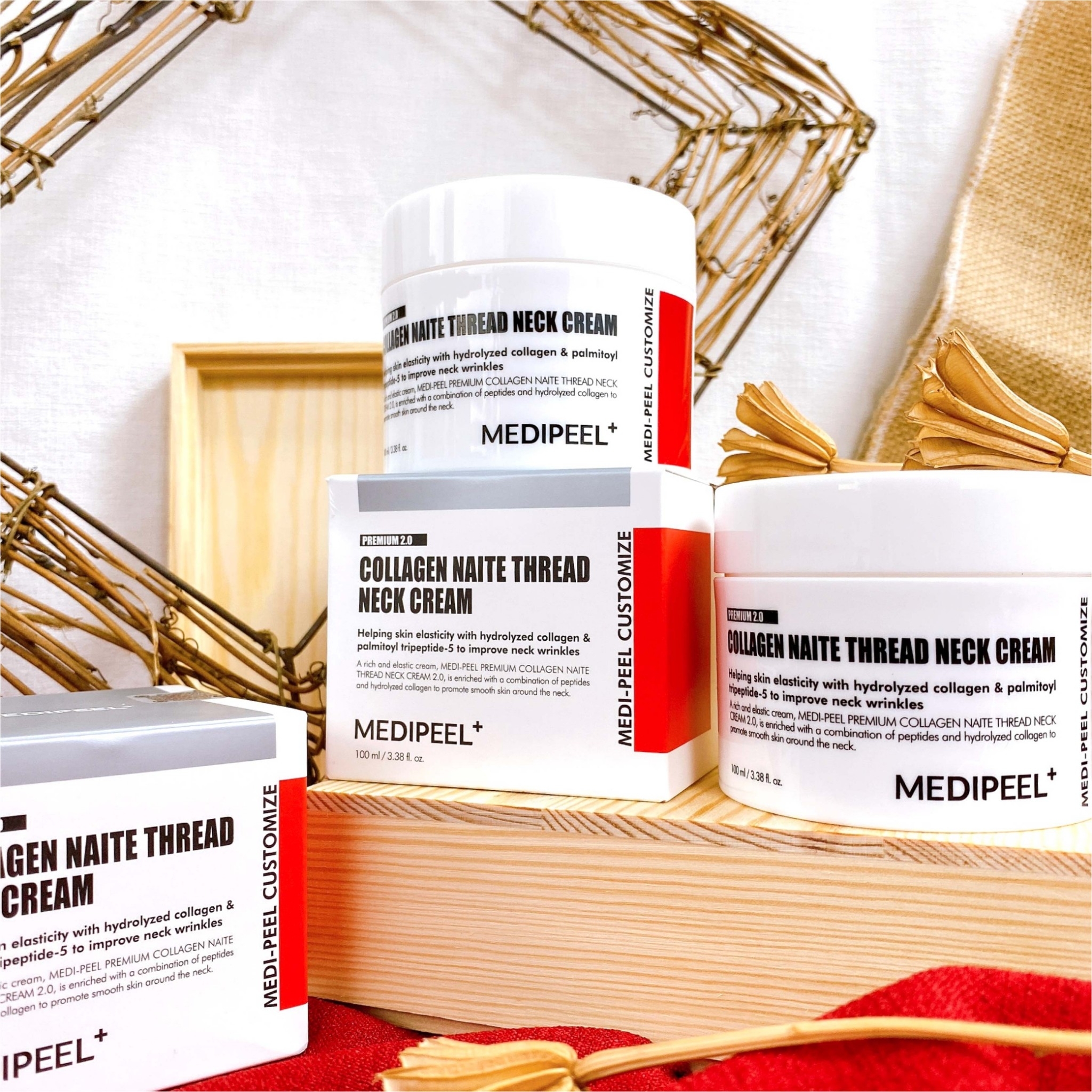 - MEDI-PEEL 高濃縮拉絲頸霜 2.0:含97,500ppm水解膠原蛋白與胜肽,緊緻提升肌膚,保濕與抗皺效果佳。