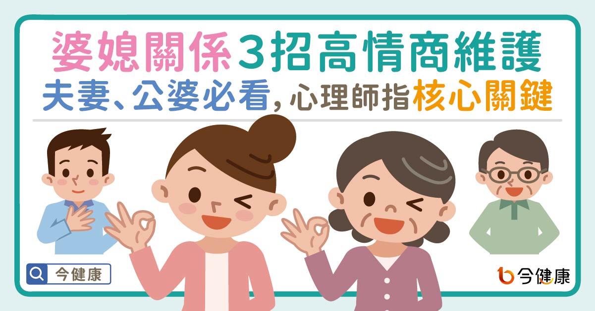 建立界線與溝通技巧:夫妻需一起討論並設定小家庭的自主權界線,並用友善、專注傾聽的溝通方式,避免指責,創造安全的對話空間,讓婆媳雙方都能表達感受與需求。