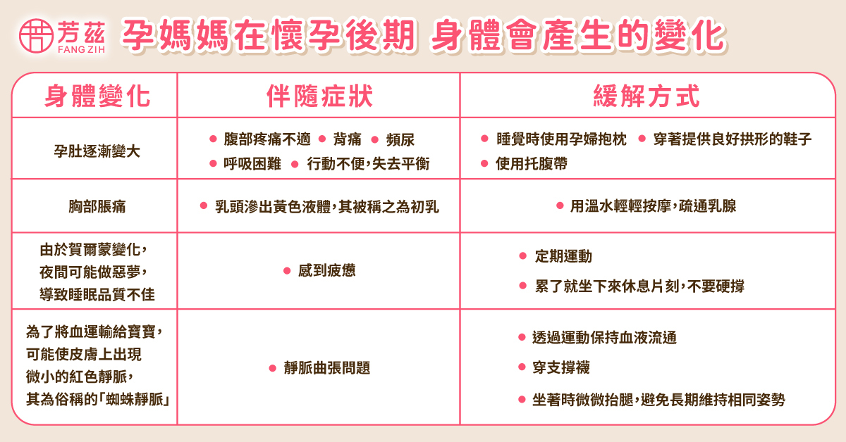 孕婦孕後期行動不便外出時,應先自我評估身體狀況是否穩定且精神充足,穿著方便活動且防滑的鞋子與服裝,避免提重物,並隨時注意身體警訊如腹痛或出血;乘車時建議坐後座並正確佩戴安全帶(腰帶放在大腿上、肚子下方,肩帶置於胸部中間),同時安排適度休息與補充水分,避免疲勞與長時間久坐。