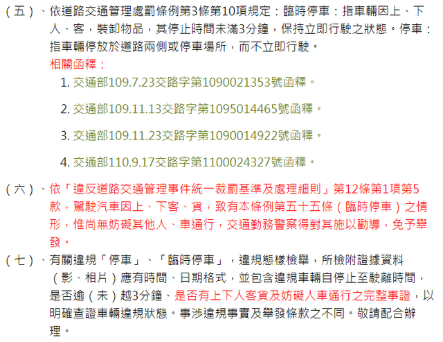 - 上下客貨臨時停車之照片或影像:需能證明車輛是因上下客、貨而臨停。