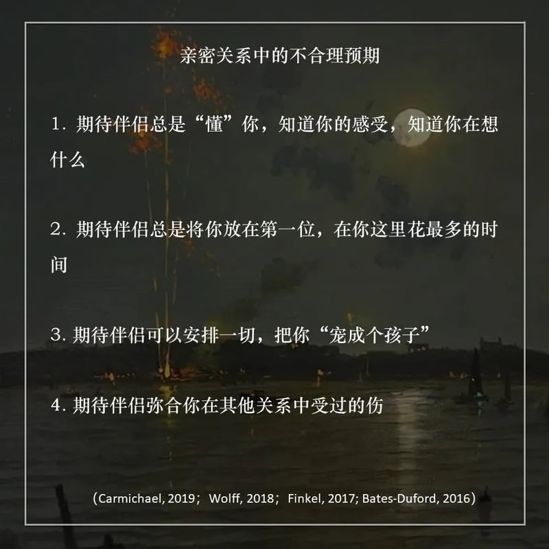 綜合以上,過度期待會破壞親密關係的穩定與健康,造成雙方心理負擔與情感疏離,甚至導致關係破裂。健康的親密關係需要建立在平等接納與合理期待之上。