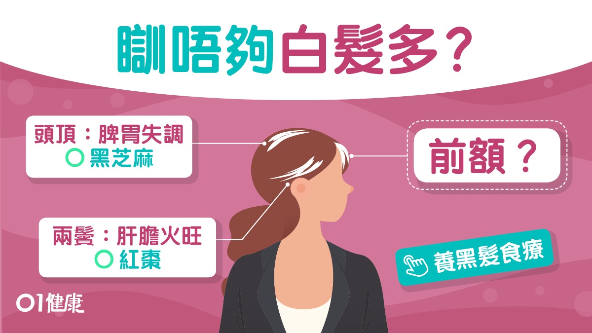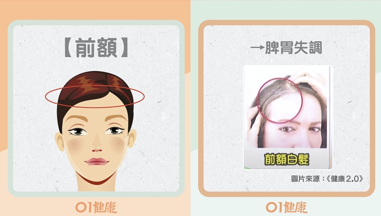 - 兩鬢:與肝血、肝氣有關,壓力大、作息不正常可能導致此處早生白髮。