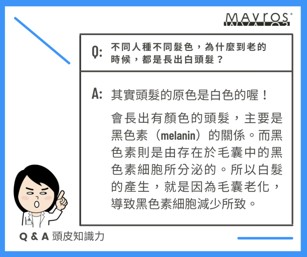 - 白種人平均約35歲開始長白髮。