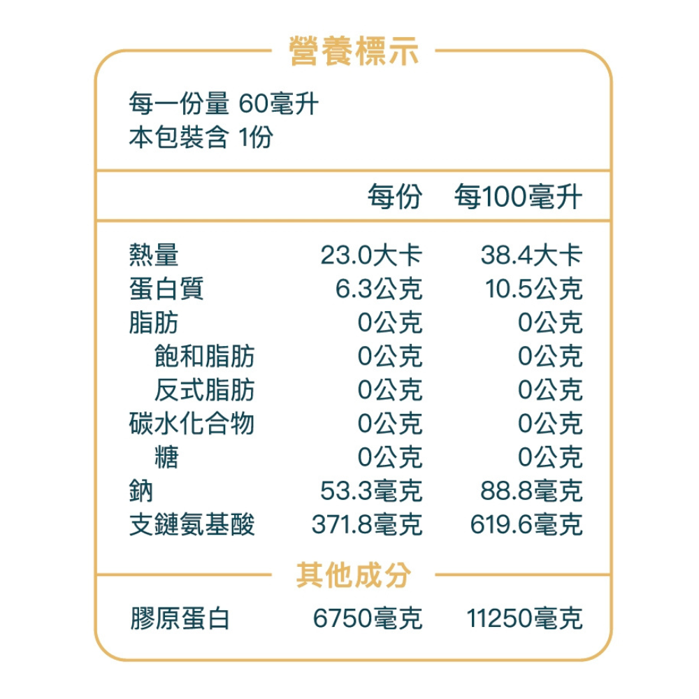 | 補充重點 | 補充鈣質、牛磺酸、膠原蛋白,有助於骨骼、皮膚、關節健康 | 快速補充體力、增強元氣、促進組織修復 |
