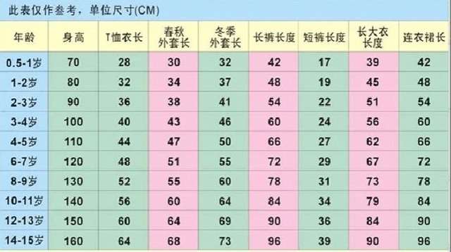 此外,童裝尺寸選擇以身高為主要依據,再輔以體重判斷,因為同年齡兒童身高體重差異大,身高是最準確的參考指標。