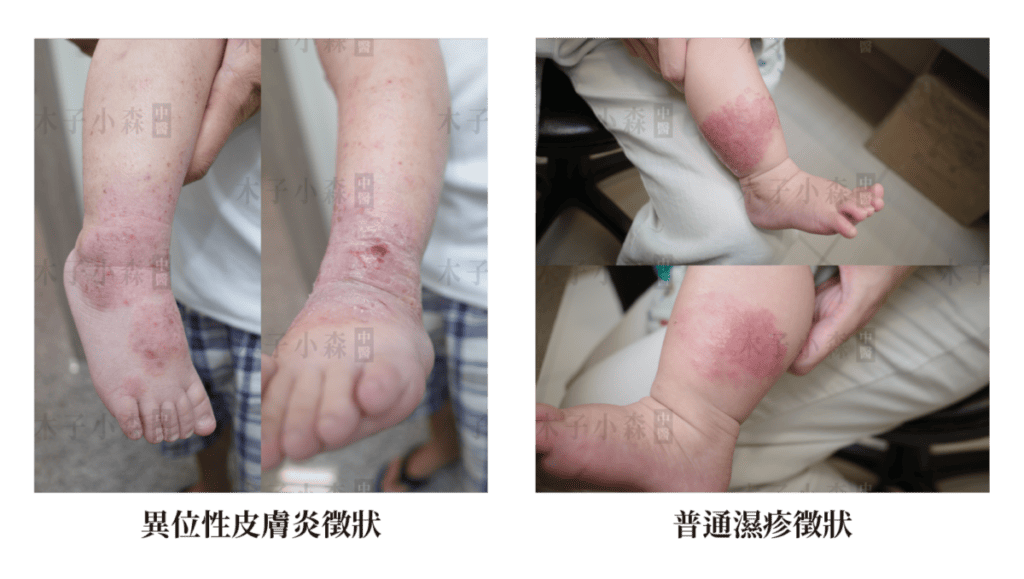 | 次要診斷條件 | 皮膚乾燥、眼眶暗沉、乳頭濕疹、唇炎、白色糠疹、苔蘚化等 |