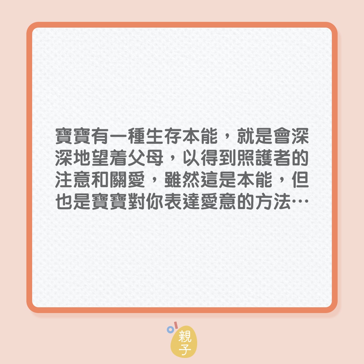 深深注視你的眼睛:寶寶會用眼神鎖定你,這是他們表達信任和依賴的方式,代表你在他們心中非常重要。