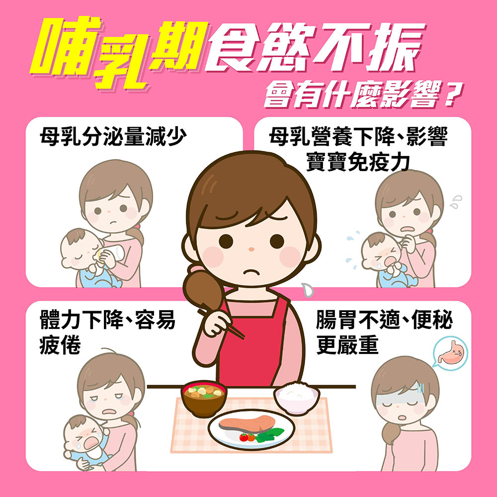 - 若維生素、礦物質攝取不足,會降低乳汁的營養價值,影響寶寶健康。