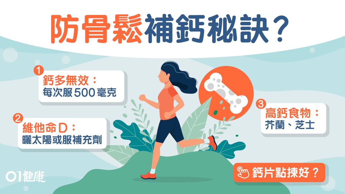 - 若補充含維生素D的鈣片,更需注意維生素D的攝取量,避免維生素D過量引發高血鈣。