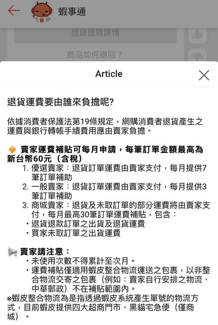 根據蝦皮平台規定,買家在鑑賞期內可申請退貨。商城賣家提供15日鑑賞期、優選+/優選賣家提供7日鑑賞期。