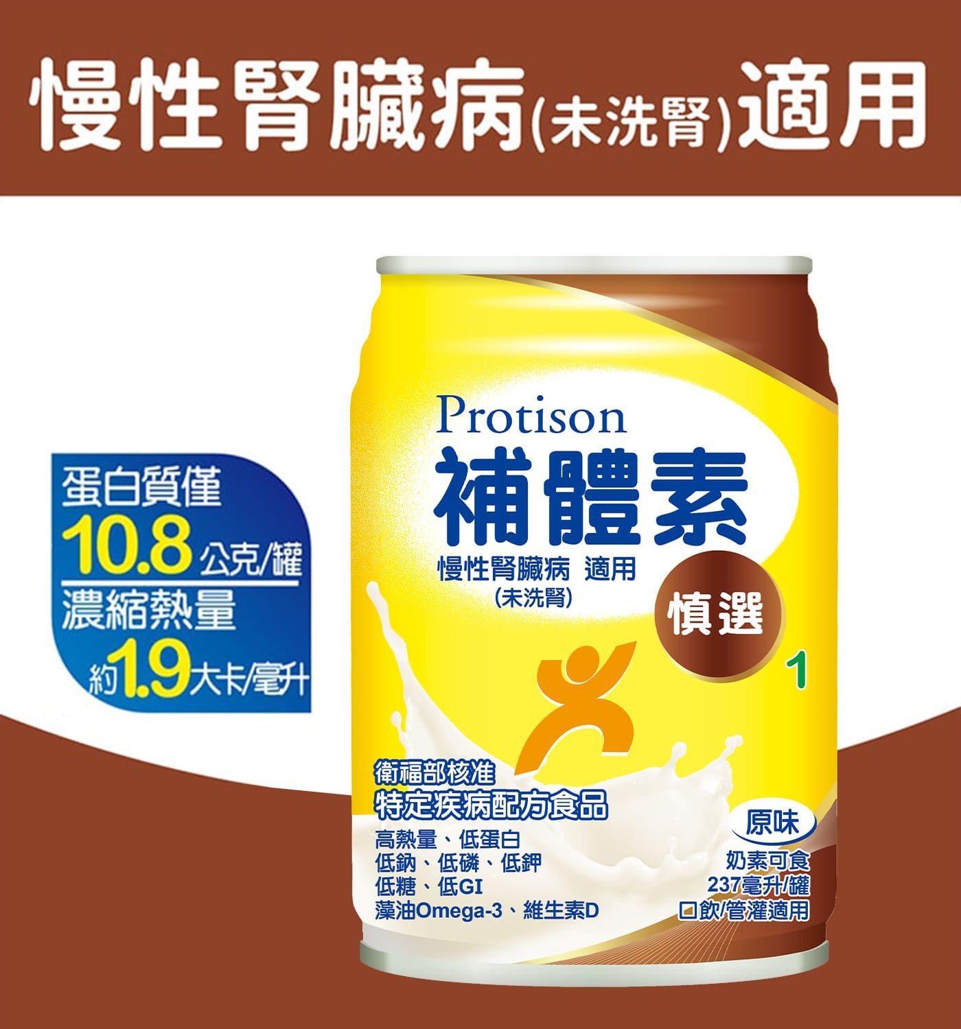 未洗腎的慢性腎臟病患者應選擇極低蛋白質的營養品。蛋白質攝取應維持在每公斤體重0.6到0.8公克,並優先選擇高生物價的蛋白質來源,如魚類、肉類、蛋類、黃豆類等。建議使用低蛋白質、低升糖指數、低磷鈉鉀、熱量濃縮及含果寡醣的特殊營養品。