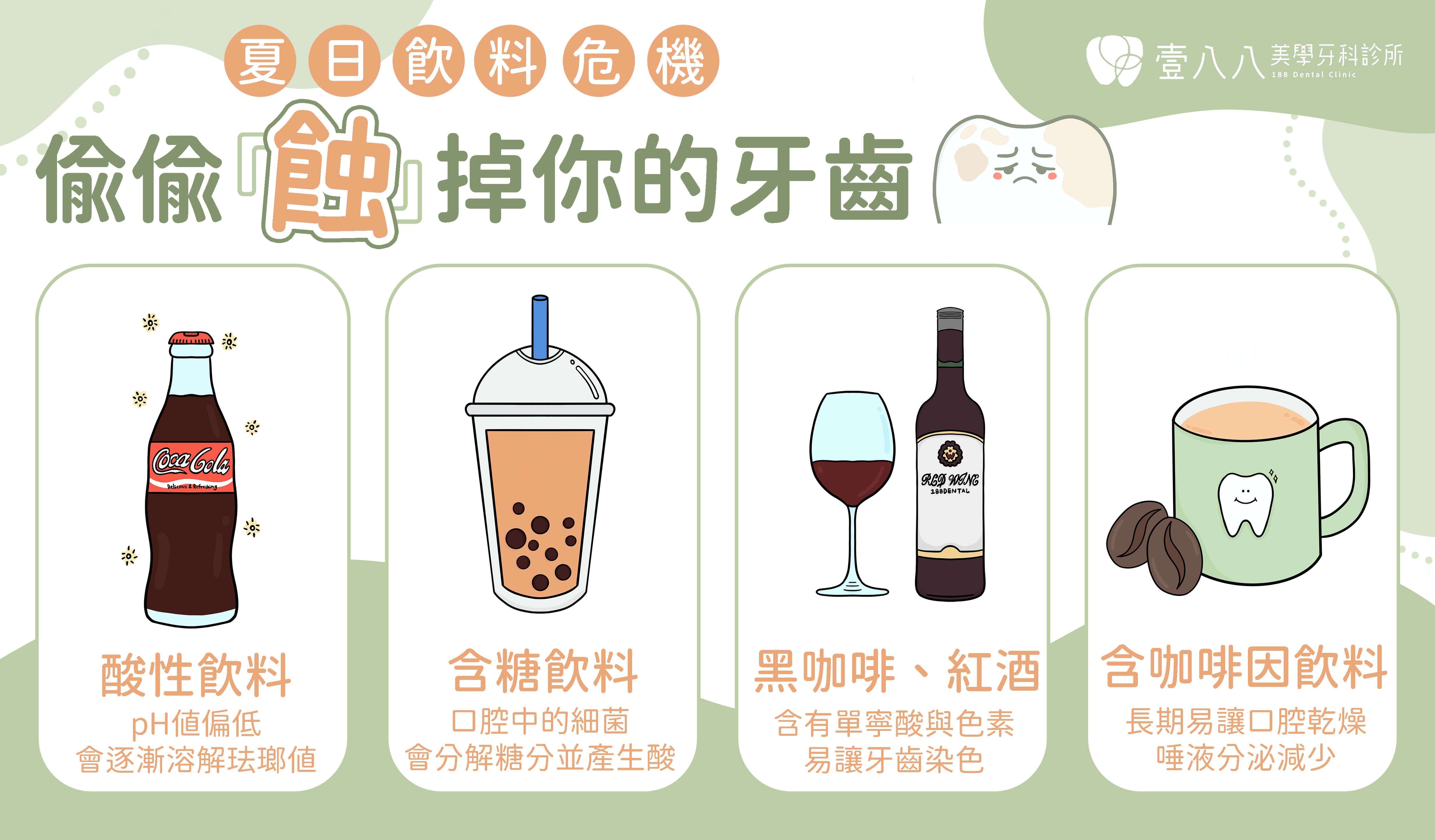 酸性飲料與食物:碳酸飲料和某些果汁的酸性成分會軟化牙齒的琺瑯質,使牙齒更容易吸附色素,進一步加劇變色。