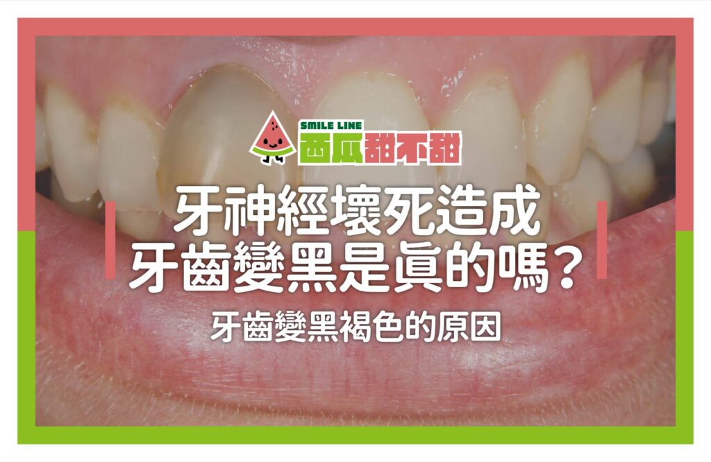 蛀牙(齲齒)若嚴重波及牙髓,會引起牙髓感染與壞死,壞死的牙髓組織會釋放色素或分解產物,滲入牙齒內部,導致牙齒由內而外變色,常見為灰黑色或深褐色。
