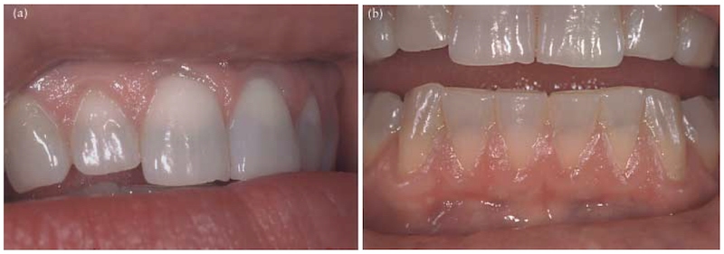色素沉澱通常是牙齒表面附著的色素,顏色多為黃褐色、深褐色甚至黑色,常見於牙齒靠近牙齦邊緣或牙齒溝槽處。色素沉澱不會破壞牙齒結構,牙齒表面仍保持平滑,且通常不會有疼痛或敏感症狀。色素沉澱可用洗牙、美白等方式去除。